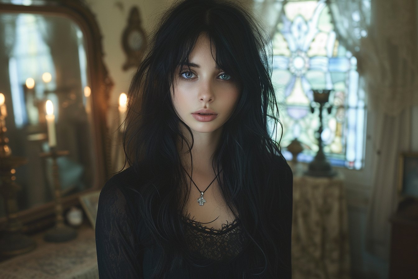 - Les accessoires dramatiques tels que les chokers, les corsets, les gants longs, les bijoux en argent et les piercings.